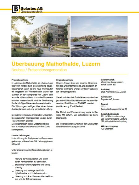 Ersondenregeneration, Überbauung Maihofhalde, Luzern