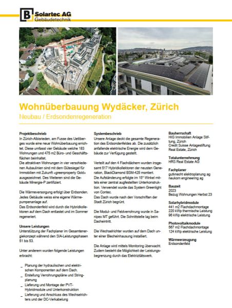 Ersondenregeneration, Überbauung Wydäcker, Zürich